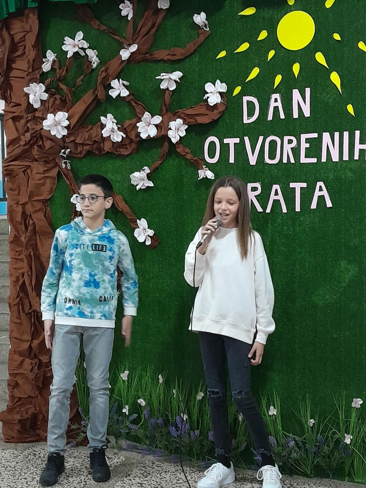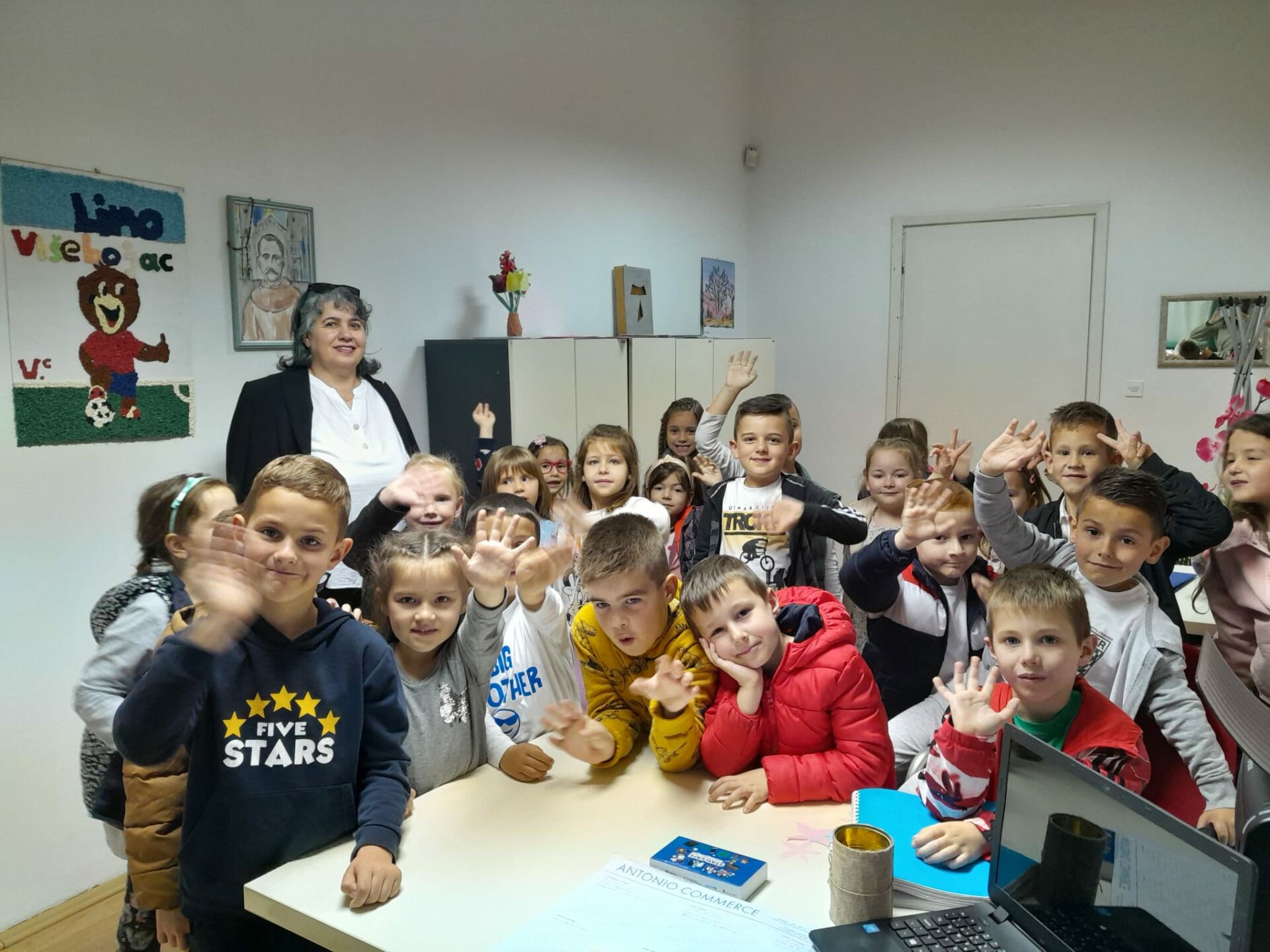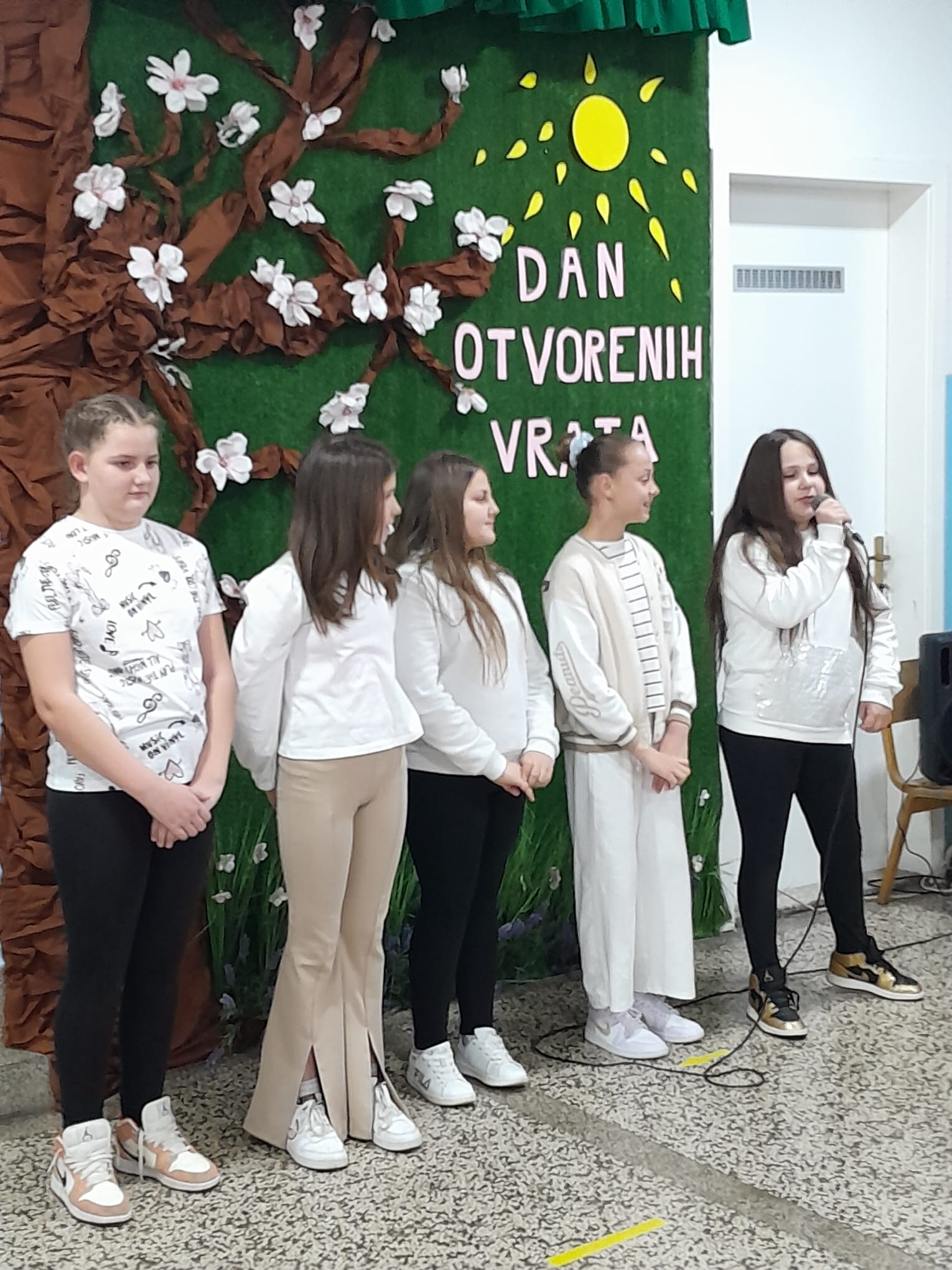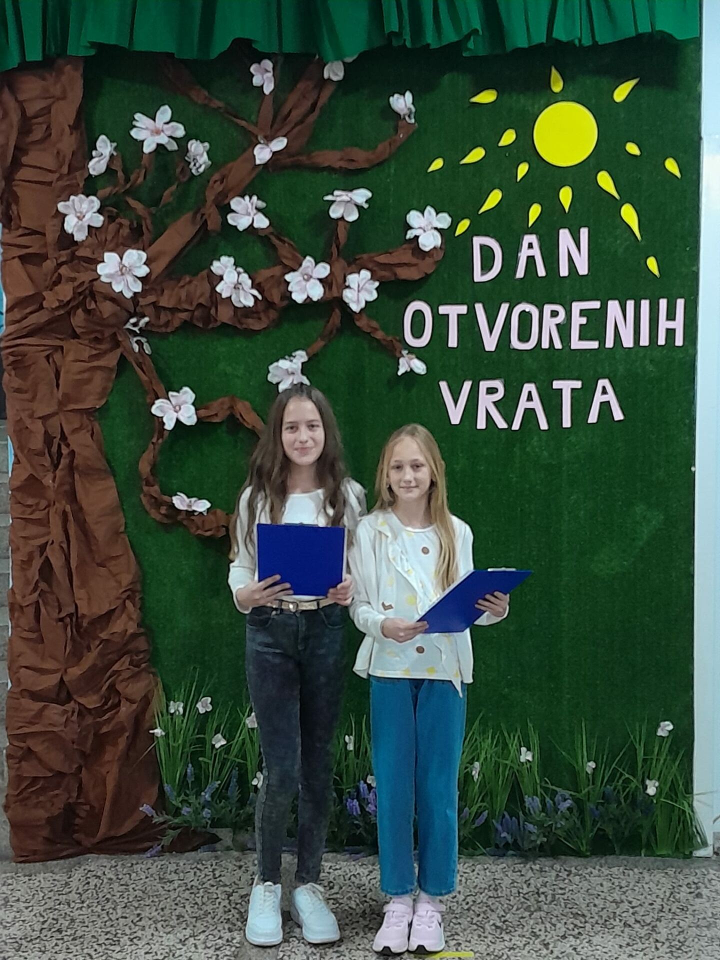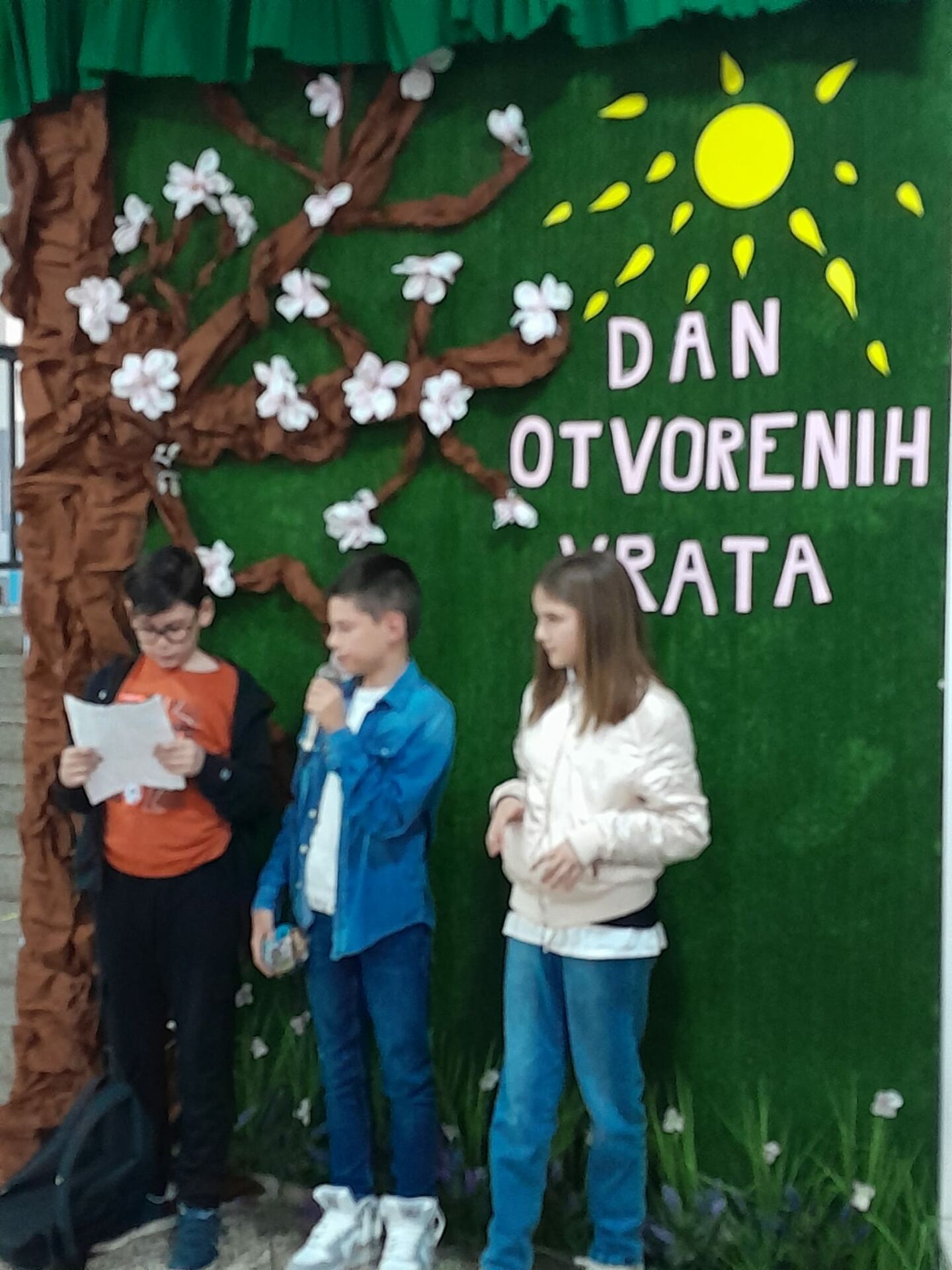 Jučer, 19. travnja 2023. godine u našoj školi se održao dan otvorenih vrata. Tom prilikom posjetili su nas naši budući prvašići te njihovi roditelji i odgojitelji. Posjetitelji su imali prigodu razgledati brojne školske panoe koje su uređivali naši mali kreativci, posjetiti školsku knjižnicu, upoznati izgled učionica, kao i drugih prostorija u školi. Naše buduće učenike sa školom su upoznale učenice Marija Martinović i Klara Primorac iz 5. razreda, no i svi ostali djelatnici i učenici su im poželjeli dobrodošlicu u njihovu buduću školu. Vesela i razdragana djeca uživala su u ovom posjetu te se sad još više raduju rujanskom zvonu i prvom danu škole.
