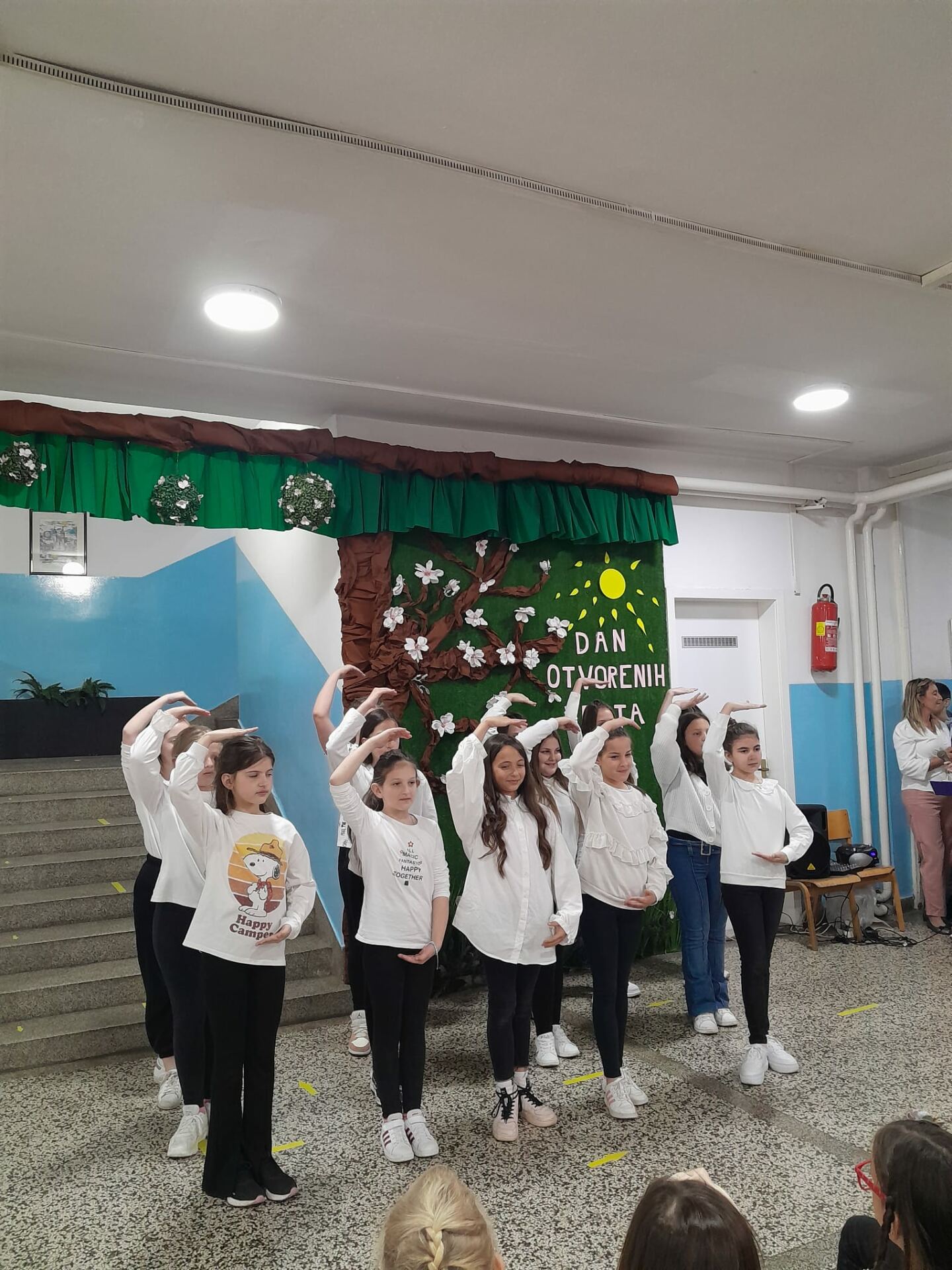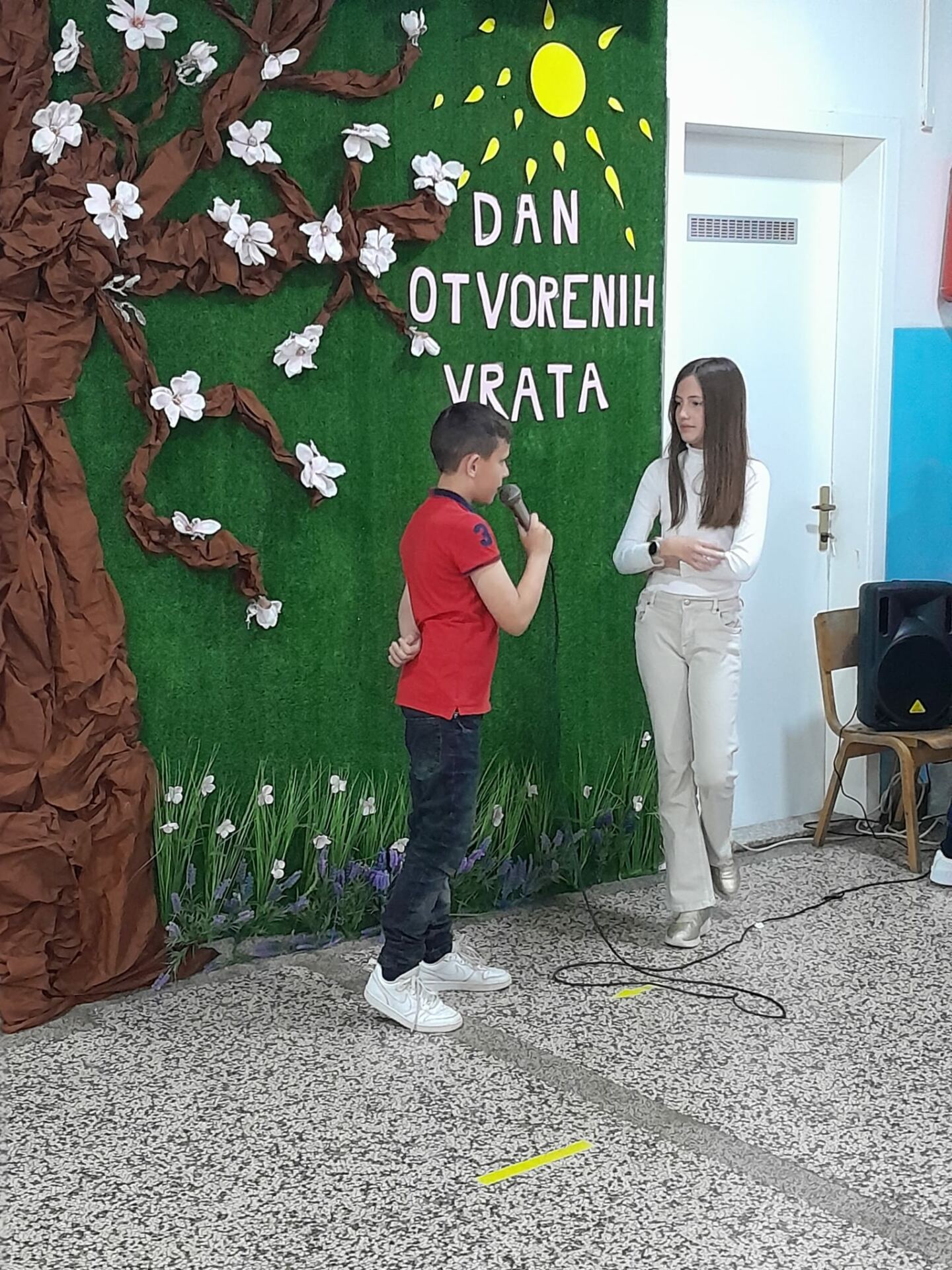 Jučer, 19. travnja 2023. godine u našoj školi se održao dan otvorenih vrata. Tom prilikom posjetili su nas naši budući prvašići te njihovi roditelji i odgojitelji. Posjetitelji su imali prigodu razgledati brojne školske panoe koje su uređivali naši mali kreativci, posjetiti školsku knjižnicu, upoznati izgled učionica, kao i drugih prostorija u školi. Naše buduće učenike sa školom su upoznale učenice Marija Martinović i Klara Primorac iz 5. razreda, no i svi ostali djelatnici i učenici su im poželjeli dobrodošlicu u njihovu buduću školu. Vesela i razdragana djeca uživala su u ovom posjetu te se sad još više raduju rujanskom zvonu i prvom danu škole.