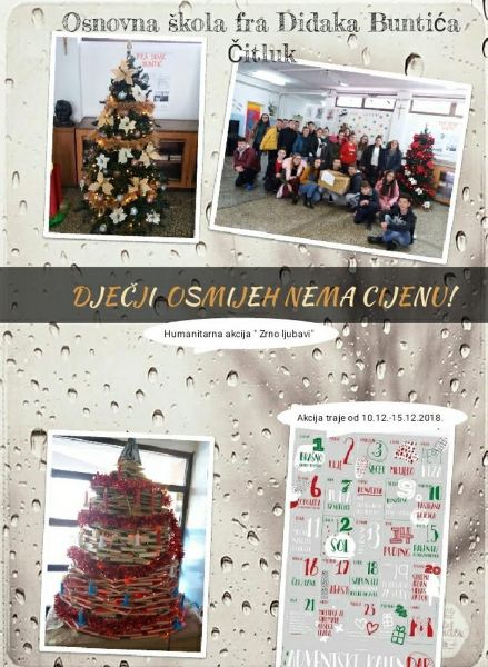 Među pšenično zrnje koje ćemo, kao simbol života, ovih dana posijati, Vijeće učenika naše škole odlučilo je umetnuti i zrno ljubavi. Hvale je to vrijedna akcija, koju su učenici oduševljeno prihvatili, a cilj joj je uljepšati nadolazeće božićne blagdane potrebitim obiteljima naših učenika.