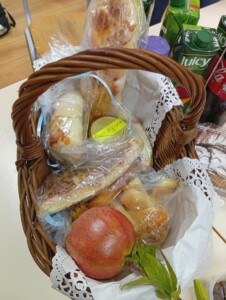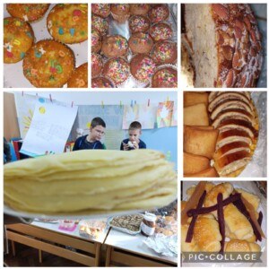 Učenici su, zajedno sa svojim učiteljima i roditeljima, pripremili bogatu izložbu domaćih proizvoda – kruha, peciva, kolača i raznih delicija.