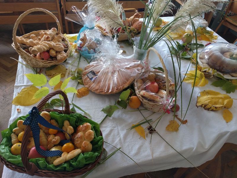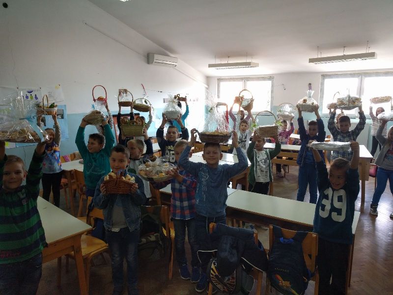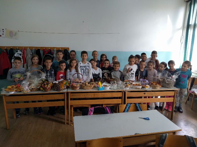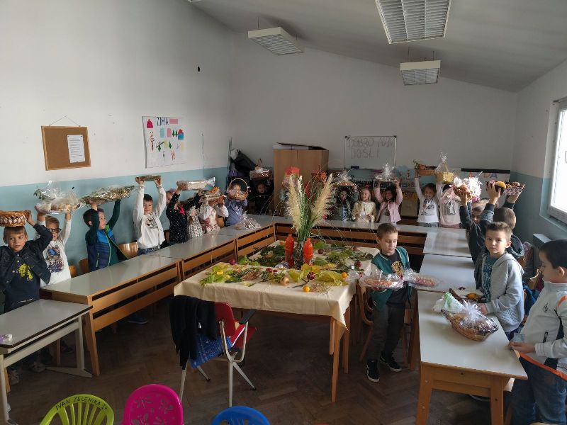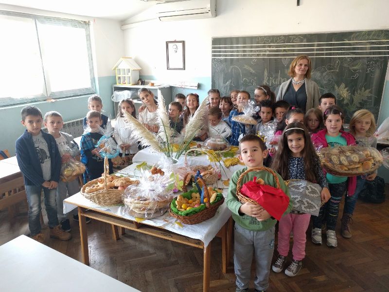 ani kruha su već postali tradicionalan događaj u našoj školi sve zahvaljujući nesebičnom ulaganju i trudu naših nastavnika, učenika i njihovih roditeljaDjeca su uz pomoć roditelja pripremila prigodne aranžmane: kruh, peciva, plodove zemlje poput šipaka, grožđa, ali i slastica.