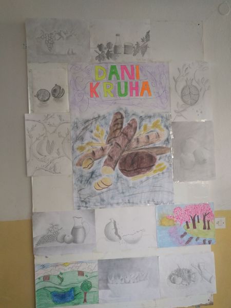 Da bi cijeli događaj bio još svečaniji i upečatljiviji, potrudili su se članovi literarne i likovne sekcije, koju su prigodnim plakatom i radovima osvježili ploču u holu škole. Uz prigodne crteže moglo se pročitati i inspirativne literarne radove, prozne tekstove i pjesmice, koje su pripremili marljivi članovi literarne sekcije.U četvrtak, 13. listopada 2016. godine, učenici i djelatnici naše škole prigodno su obilježili tradicionalne Dane kruha.