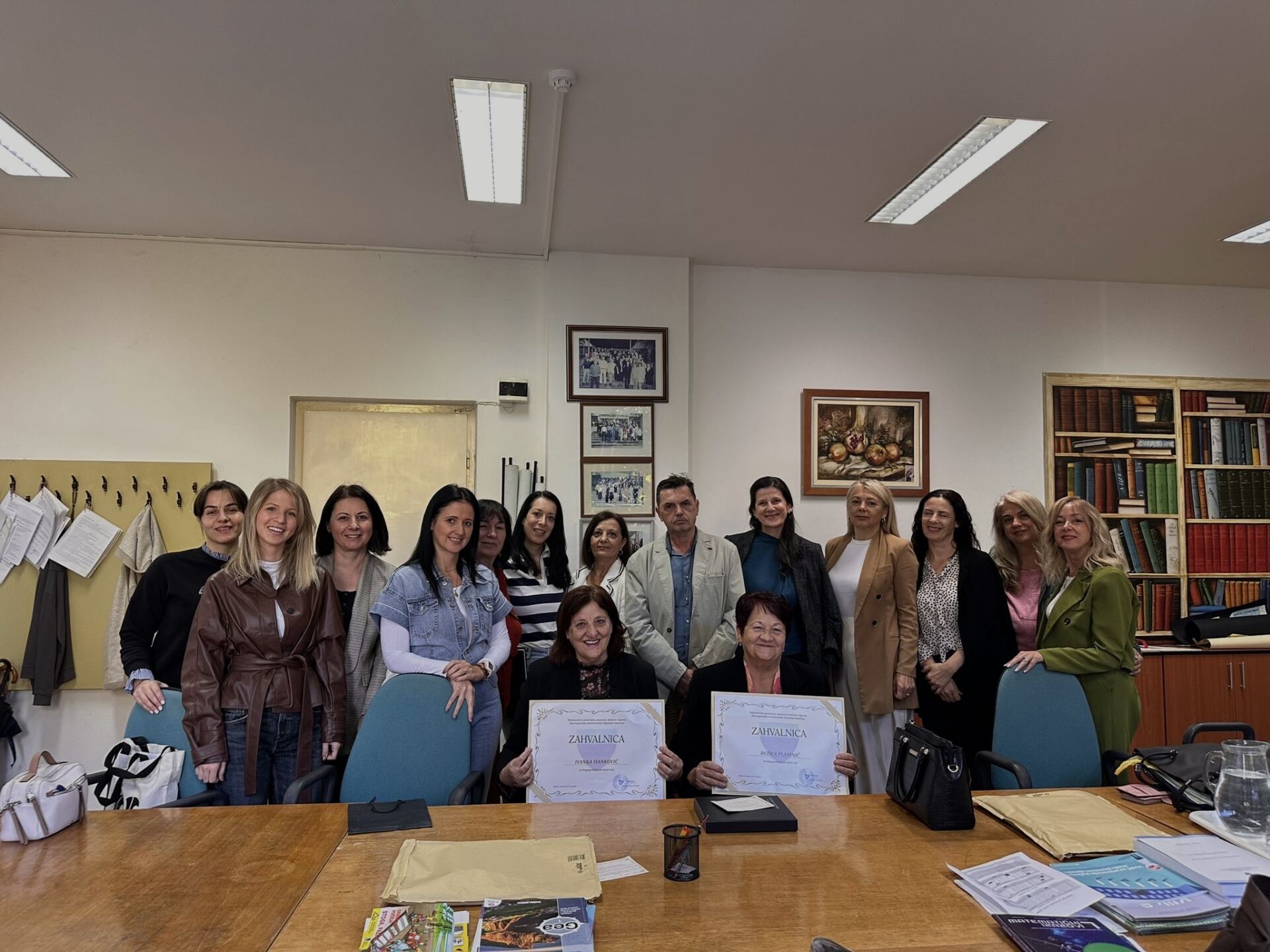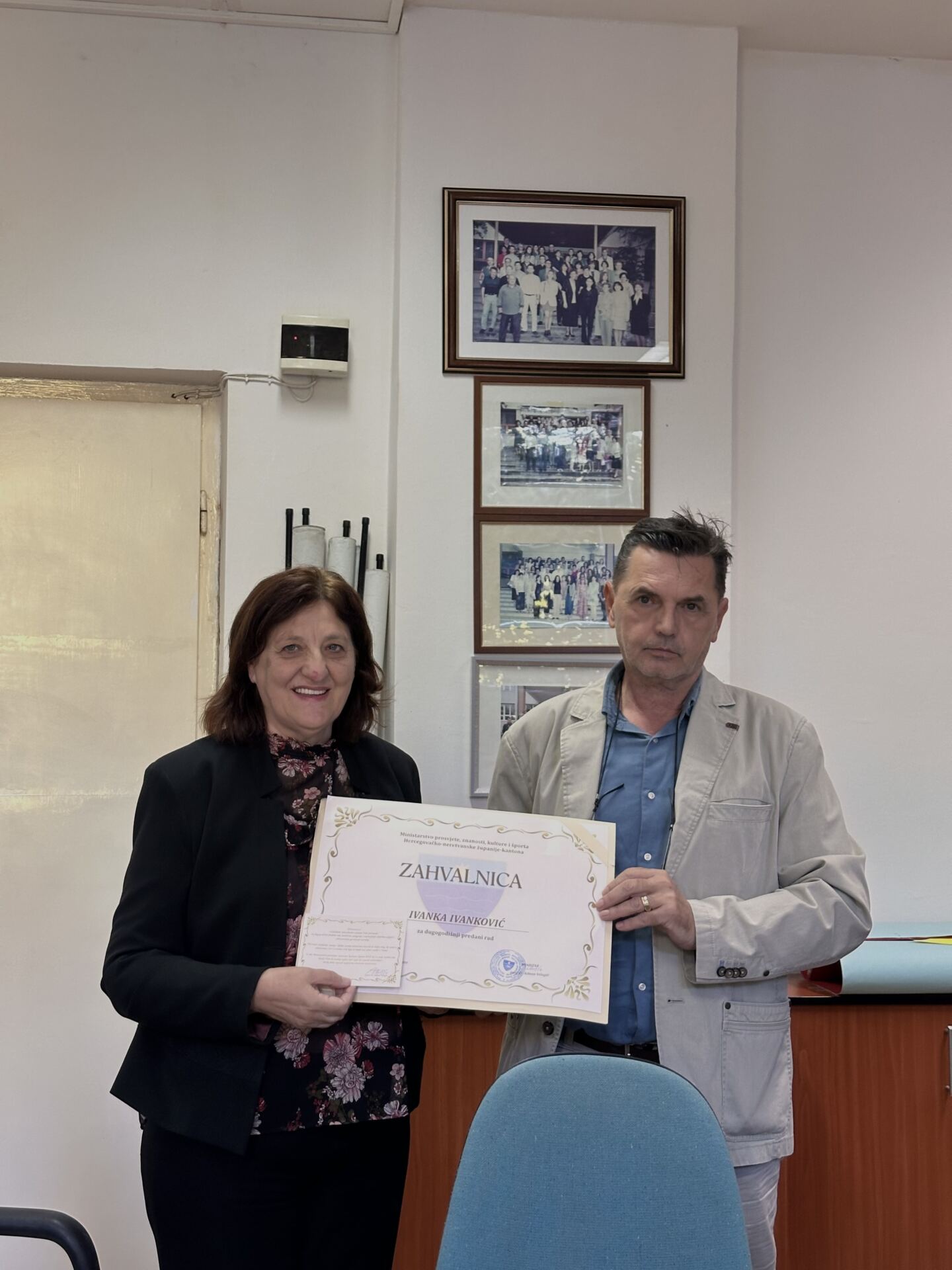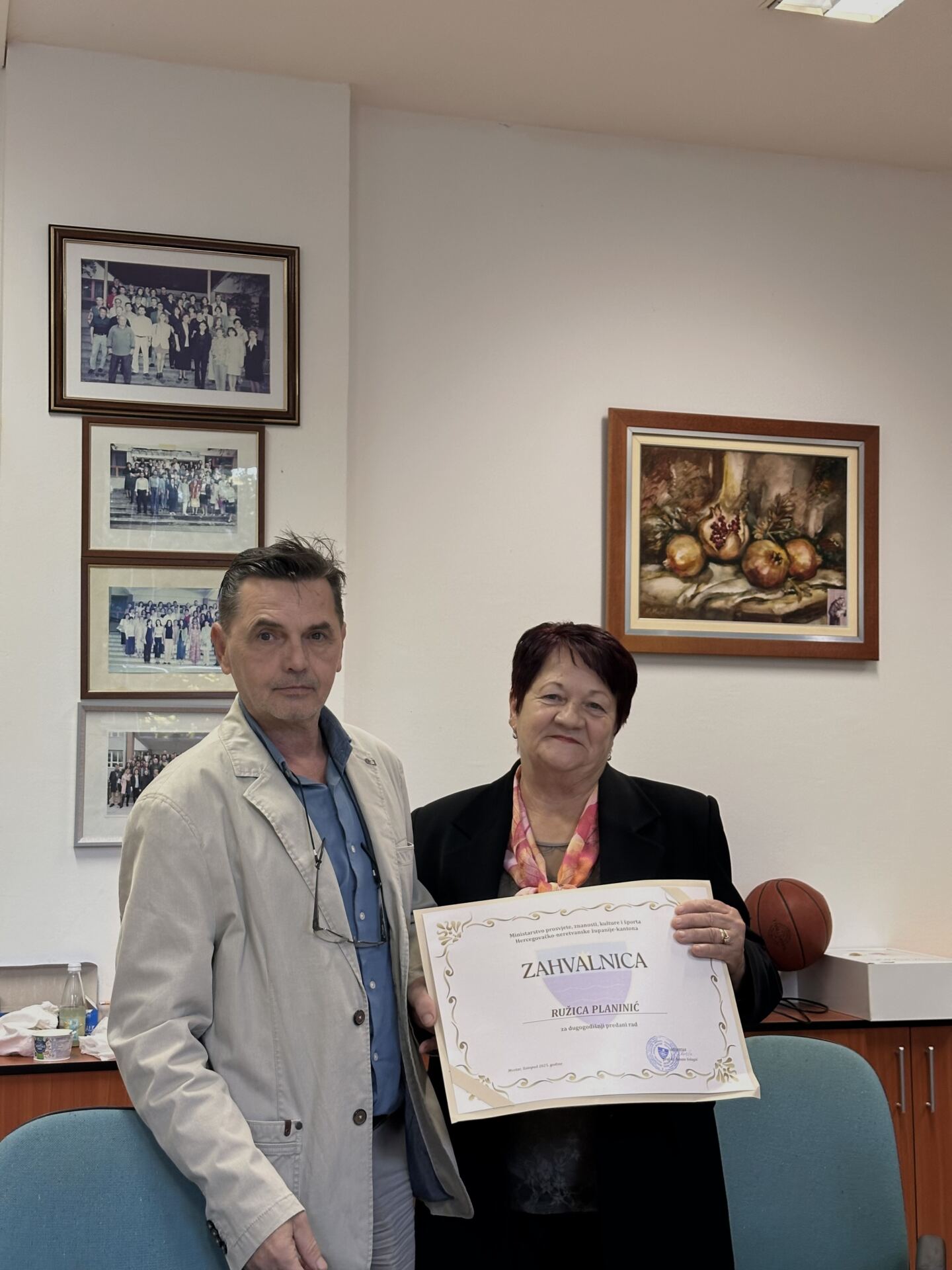 Dugogodišnje djelatnice naše škole, gđa Ivanka Ivanković i gđa Ružica Planinić odlaze u zasluženu mirovinu. Tom prigodom, Ministarstvo prosvjete, znanosti, kulture i športa uputilo im je prigodne darove i zahvalnice koje im je uručio ravnatelj Škole, gospodin Marin Kapular. Kolektiv Škole im se, također, zahvalio na uspješnoj suradnji i kolegijalnosti tijekom godina koje su provele u školi te im poželio dobro zdravlje i obilje Božjeg blagoslova kako bi dugo uživale svoje zaslužene mirovine.