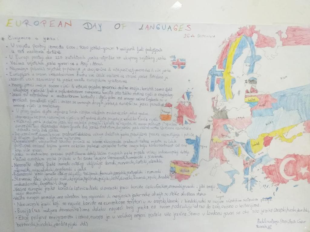 Polaznici sekcija engleskog, njemačkog i talijanskoga jezika naše škole danas su sa svojim voditeljicama obilježili Europski dan jezika, koji se diljem svijeta obilježava od 2001.godine, a na inicijativu Vijeća Europe.
