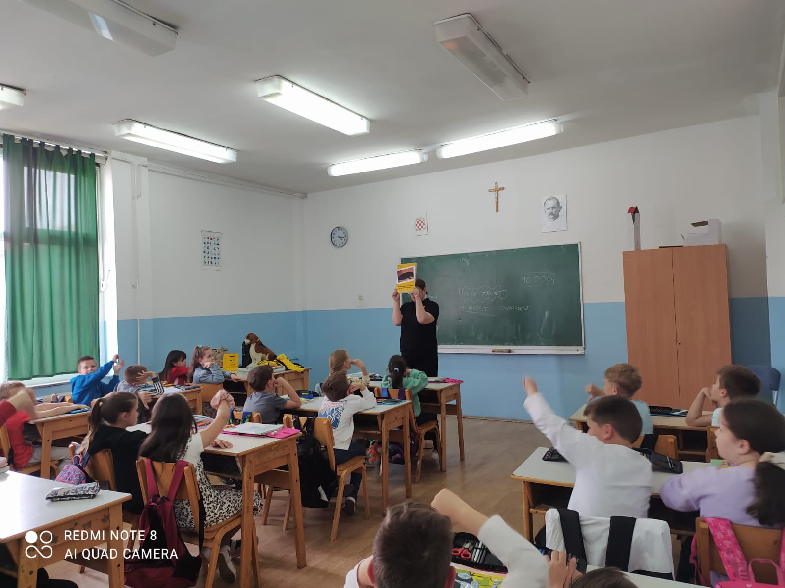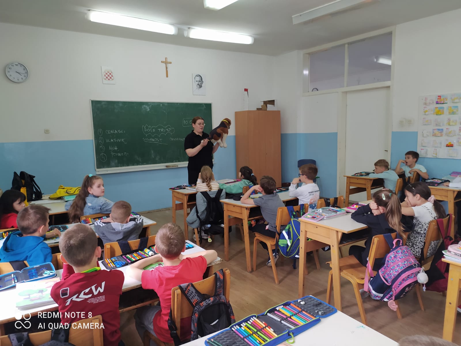 Učenici 2. a i b odjela danas su imali priliku poslušati edukativno predavanje o psima. Svi ih volimo, netko manje, a netko više, no zašto ih se ne trebamo bojati i kako to da su nam, uz ljude, upravo psi najodaniji prijatelji, naši mališani su čuli iz prve ruke. Svoje dojmove će radosno podijeliti s obiteljima i prijateljima te još više zavoljeti ovu pitomu životinjsku vrstu koja je čovjeku oduvijek bliska i vjerna.