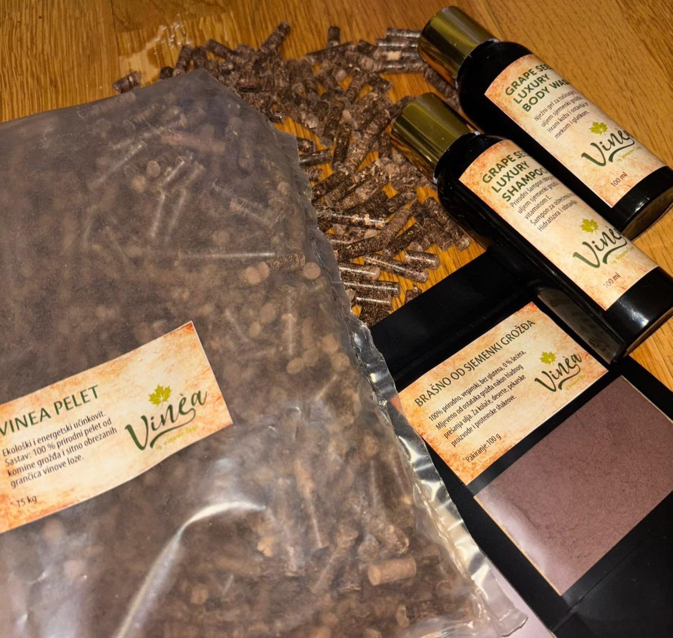 Polazeći od problema neiskorištenog otpada iz vinogradarstva, poput komine, sjemenki i ostataka loze, razvili smo koncept koji taj otpad pretvara u vrijedne proizvode. Kroz Vinèu proizvodimo ulje od sjemenki grožđa, brašno te ekološke pelete, čime povezujemo tradiciju našeg kraja s održivim i inovativnim pristupima.