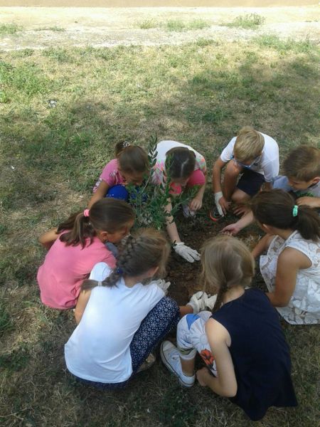 Učenici naše škole svojim su likovnim i literarnim radovima obilježili Međunarodni dan mira, a na osobito lijep i koristan način učinili su to i članovi Cvjećarske sekcije. Sa svojim učiteljicama Angelom Dodig i Slađanom Pehar, voditeljicama sekcije, u školskom su dvorištu zasadili stabla masline, koja je stablo mira.