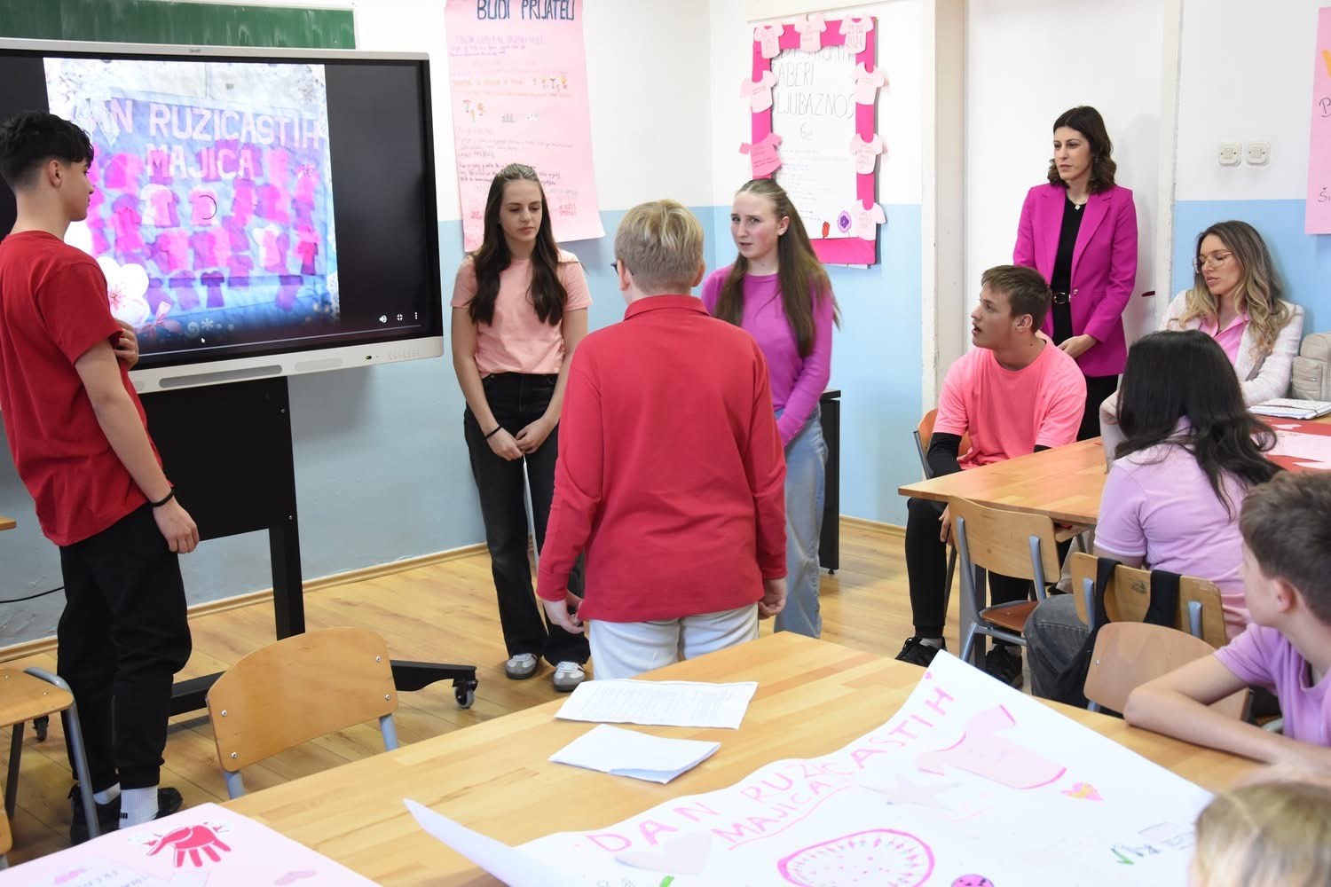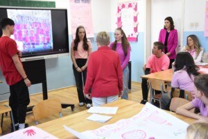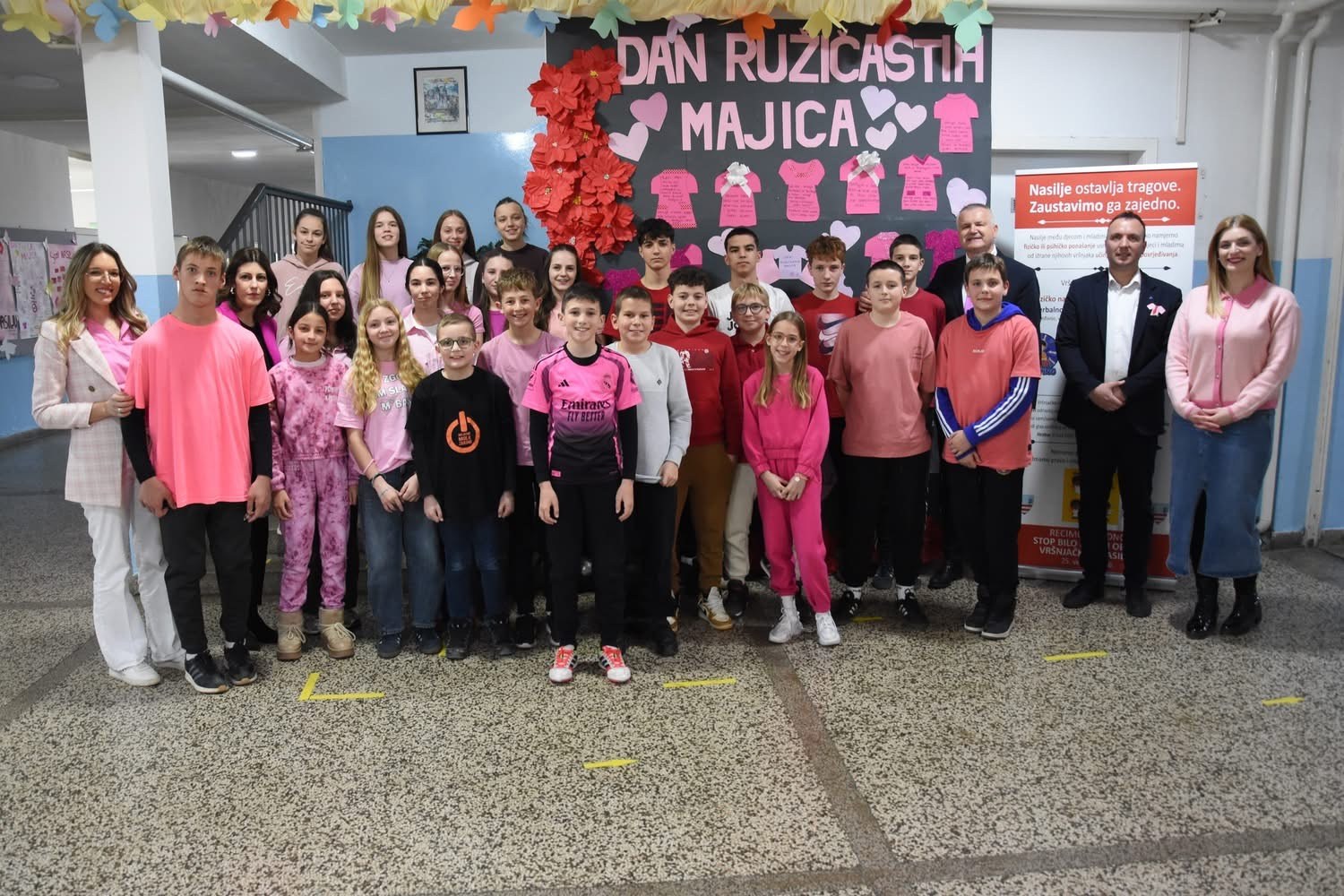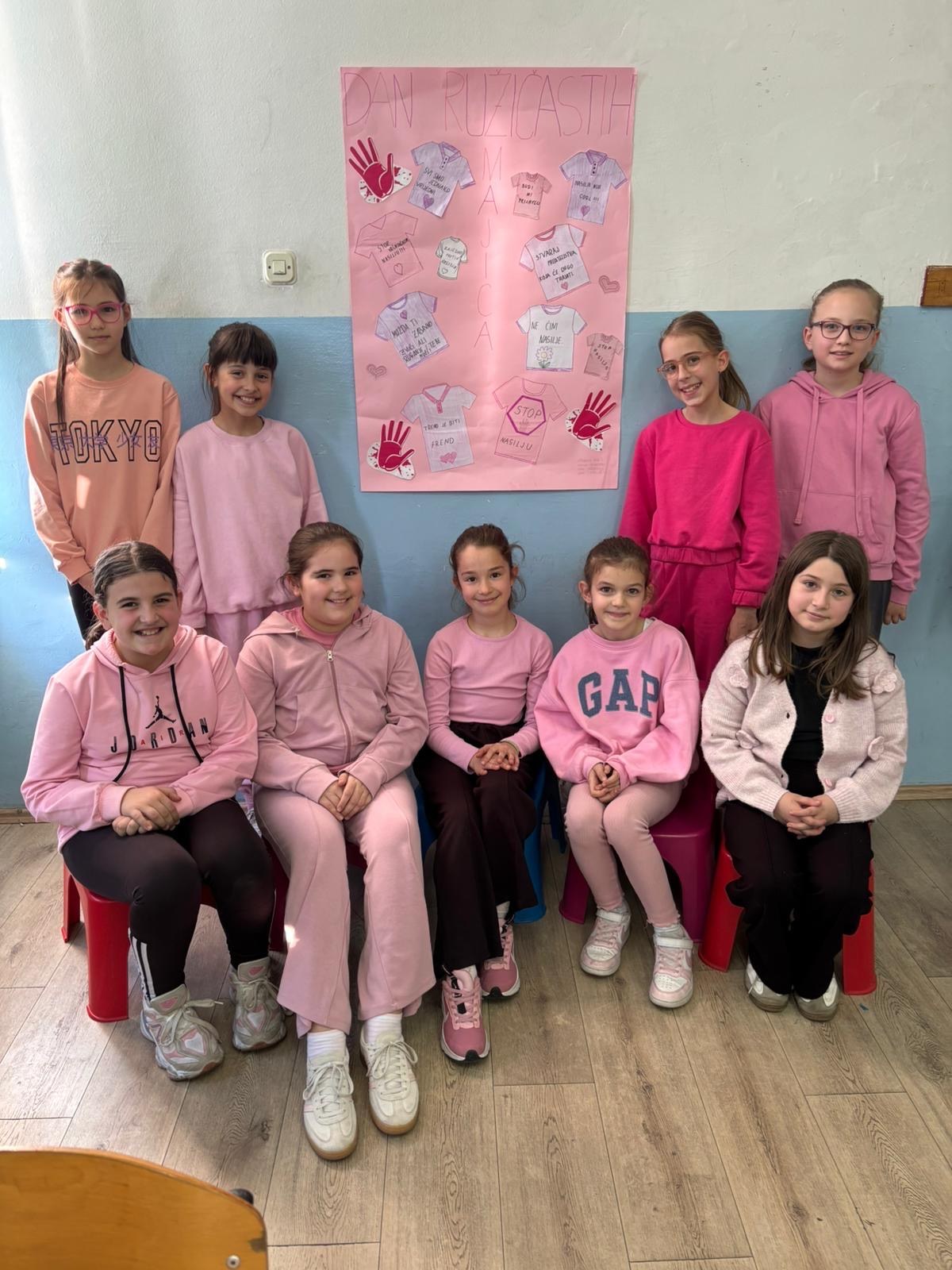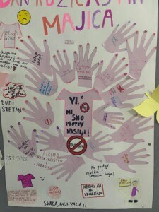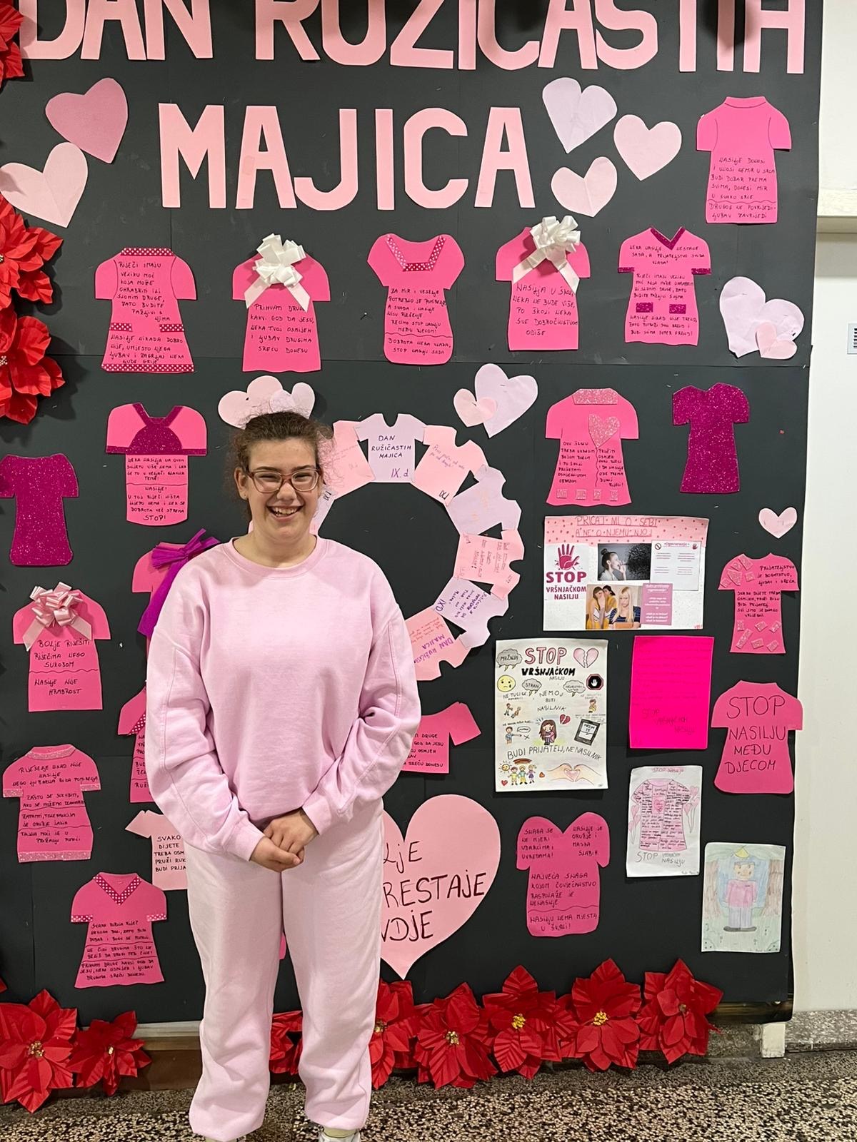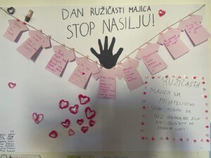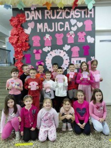 Povodom svjetskog dana borbe protiv vršnjačkog nasilja ( Dan ružičastih majica) u našoj školi je zavladala svečana “ružičasta” atmosfera.