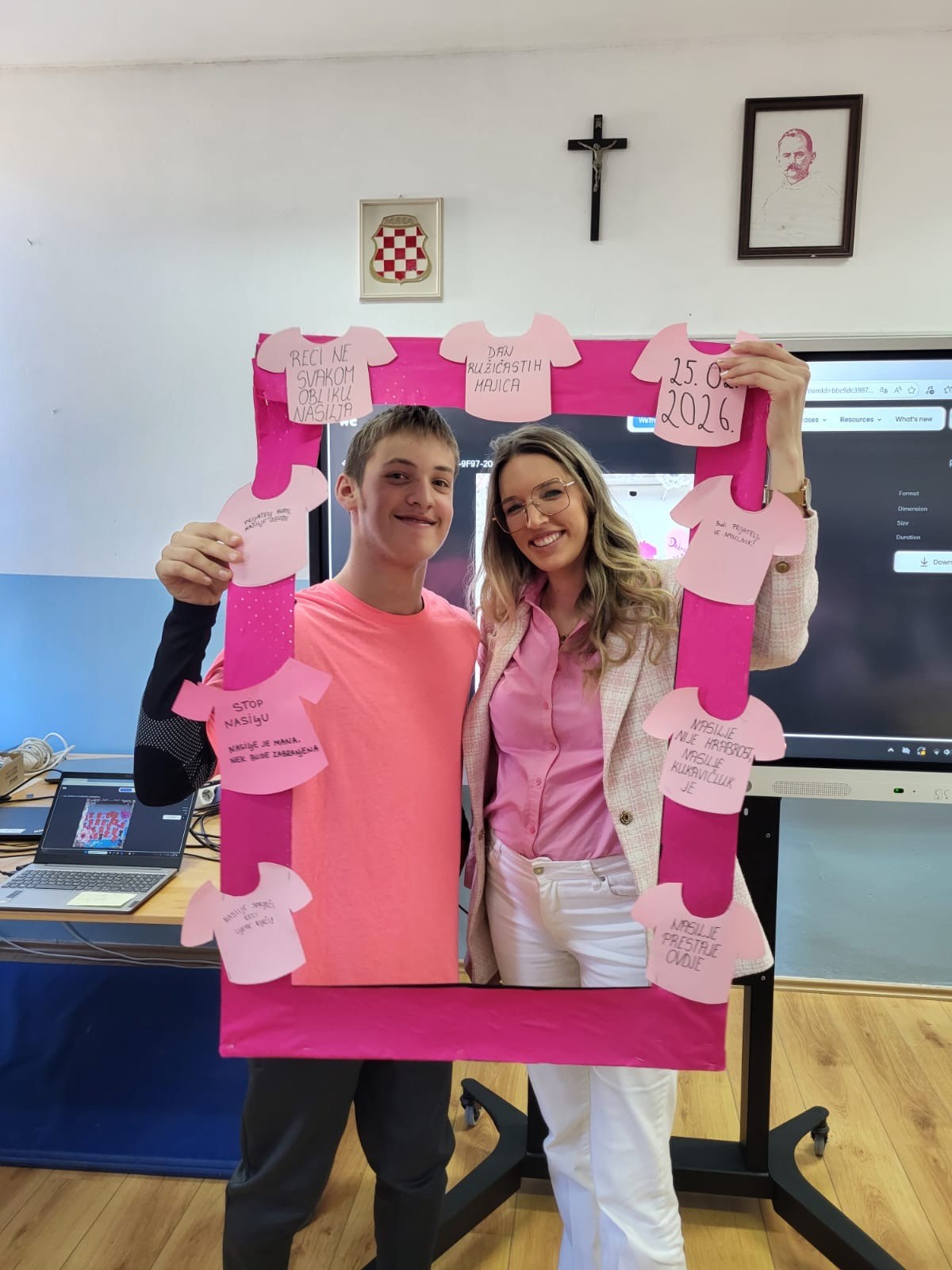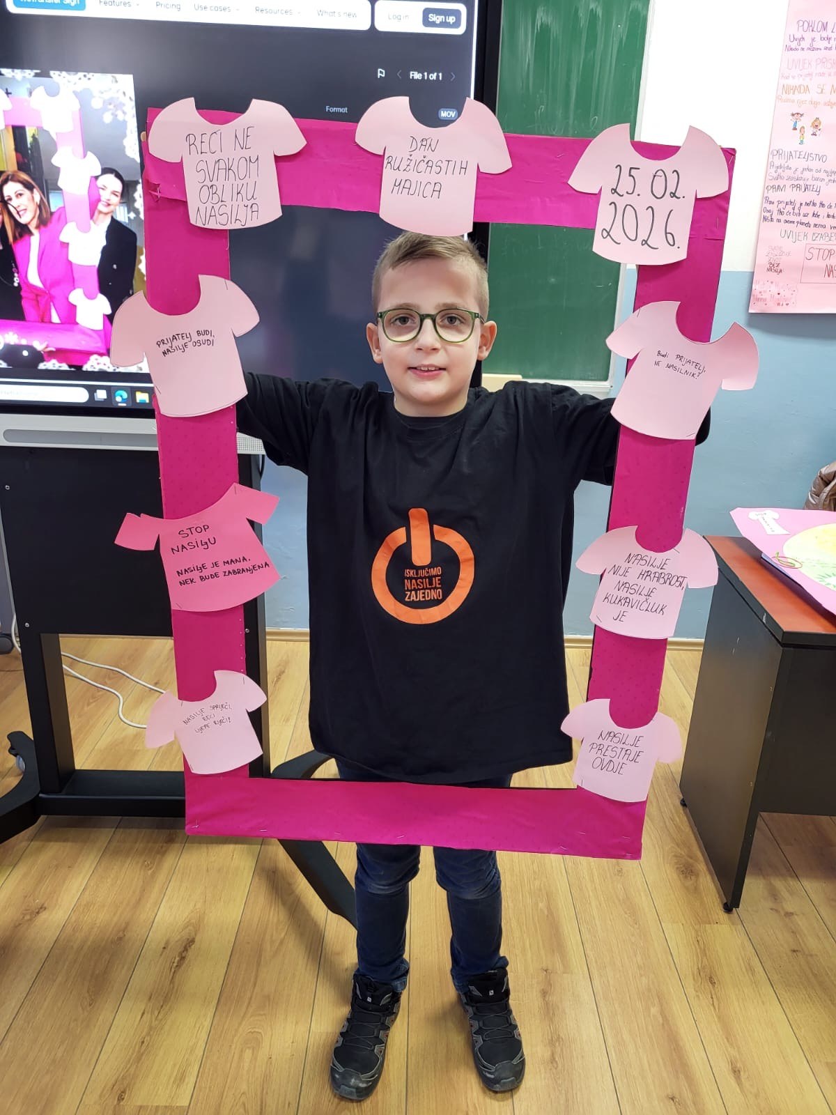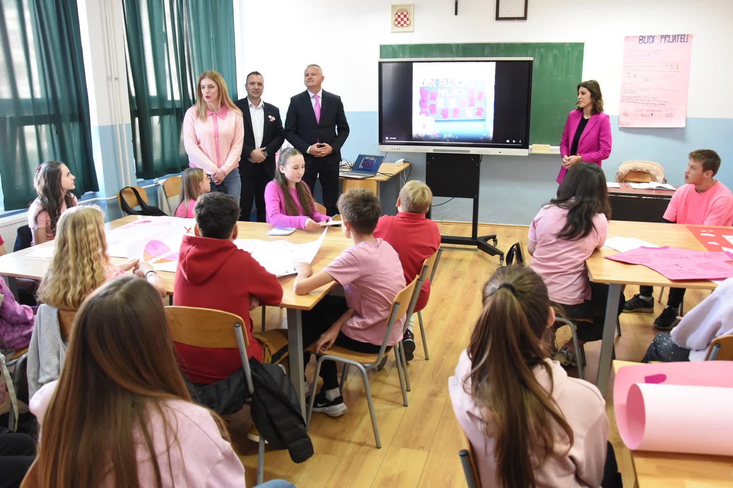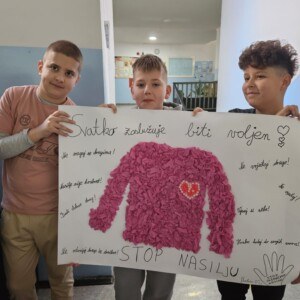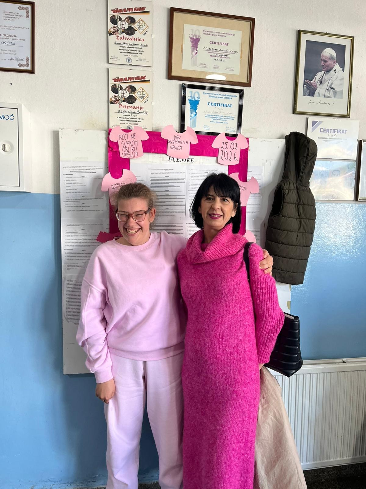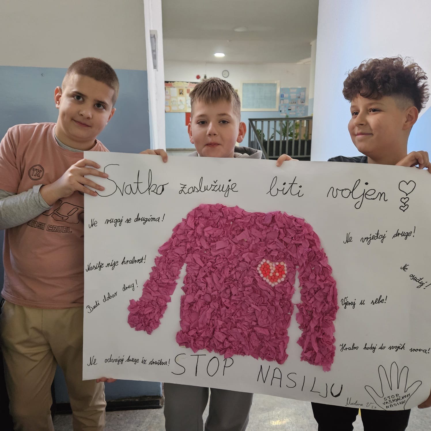 Povodom svjetskog dana borbe protiv vršnjačkog nasilja ( Dan ružičastih majica) u našoj školi je zavladala svečana “ružičasta” atmosfera.