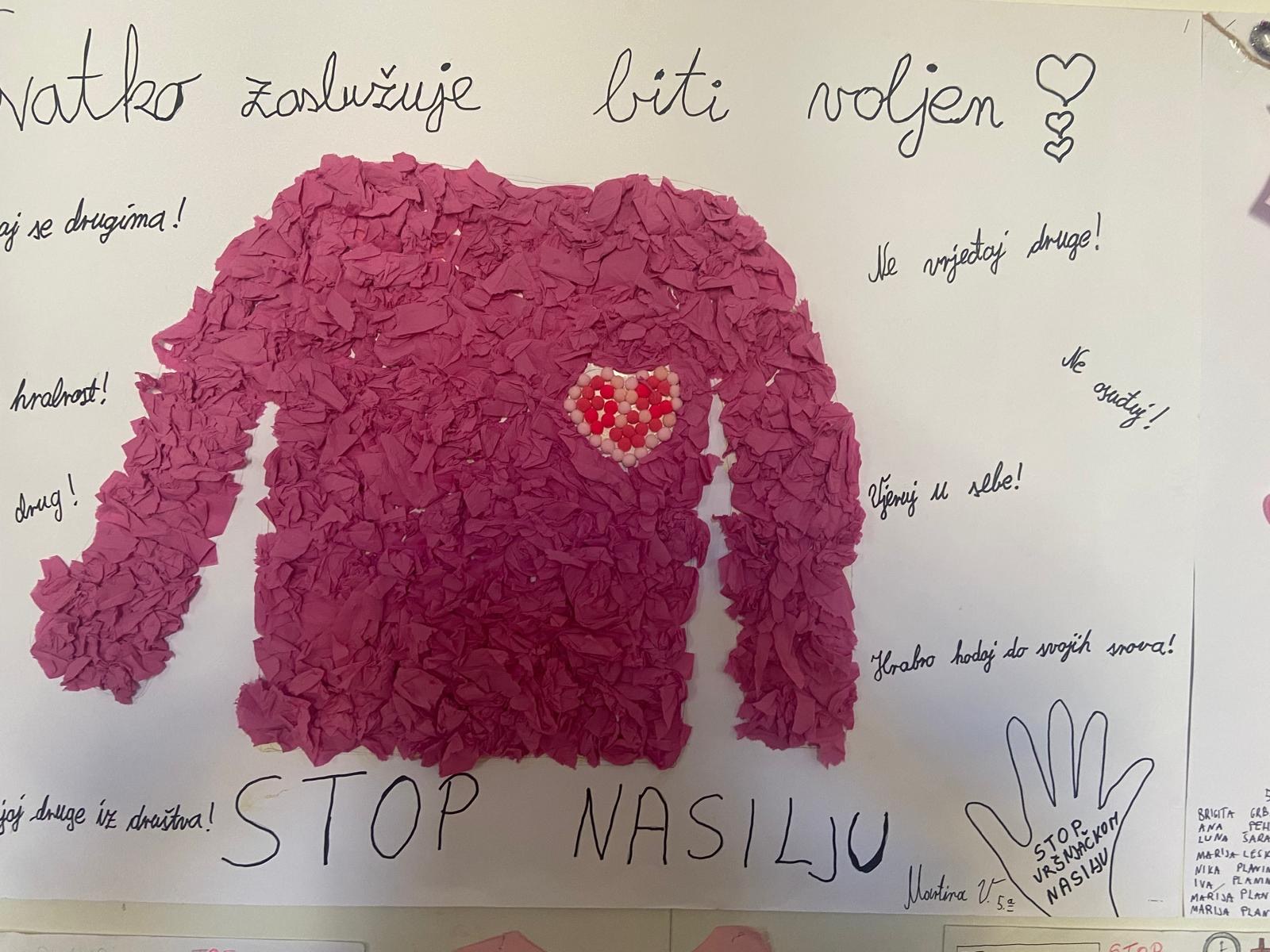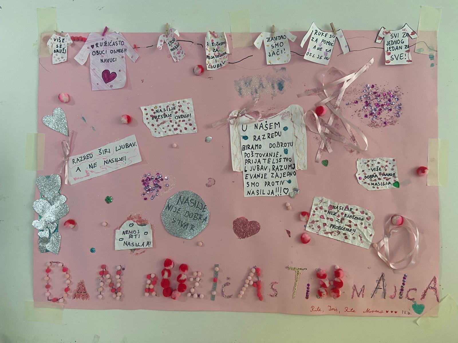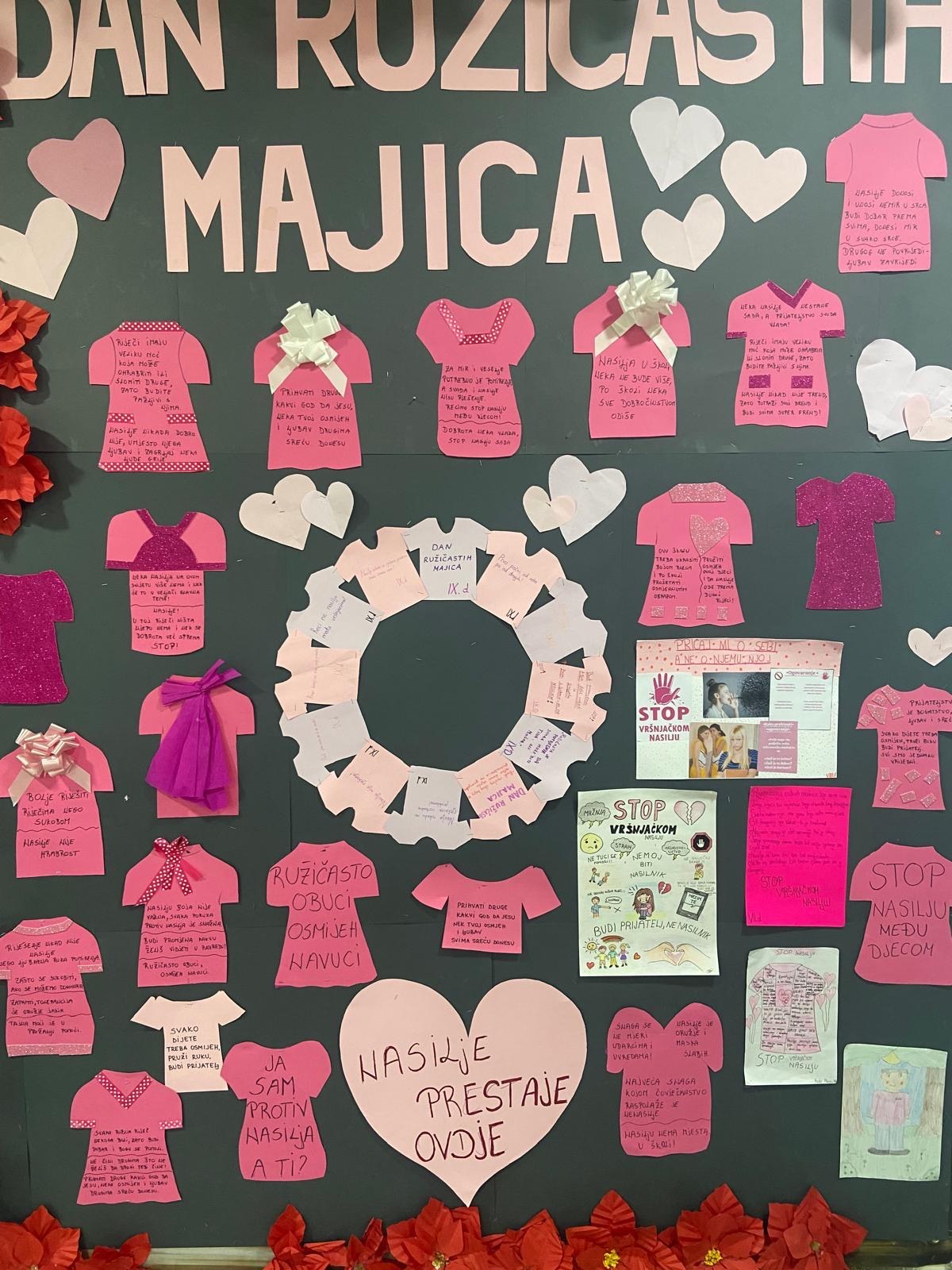 Na inicijativu Vijeća učenika, učenici su neumorno radili na aktivnostima povodom obilježavanja ovog važnog dana. Tako su, uz pomoć pedagoginje, ukrasili školske panoe s likovnim i literarnim radovima te ružičastim porukama ljubavi, tolerancije i zajedništva. Kroz sate razrednika u zadnjem tjednu u veljači realizirane su radionice na temu vršnjačkog nasilja i njegovih posljedica.