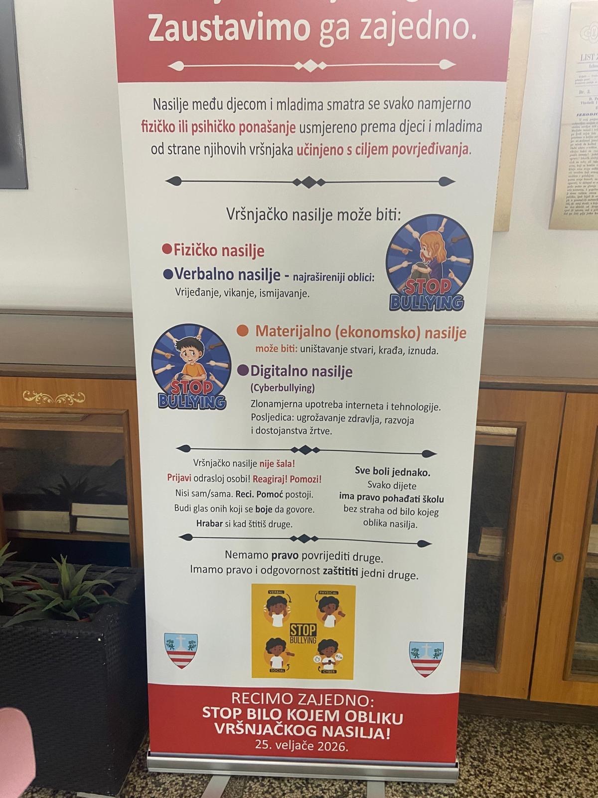 Škola se zahvaljuje predstavnicima Općine na posjeti i darovanom baneru za prevenciju vršnjackog nasilja.