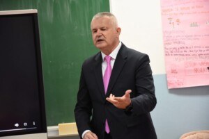 Susreli su se s Vijećem učenika koje im je priredilo prigodan kratki program, nakon kojeg su predstavnici Općine poklonili Školi edukativni baner u borbi protiv vršnjačkog nasilja. Isti je postavljen na vidno mjesto u holu škole.