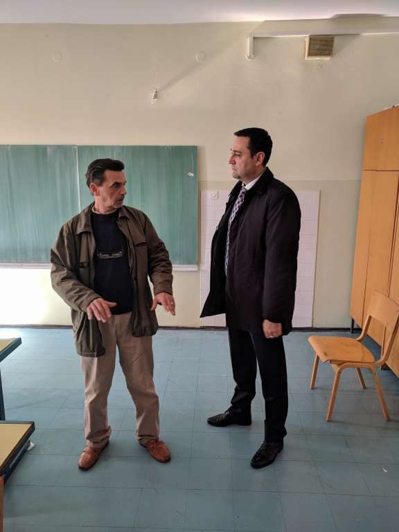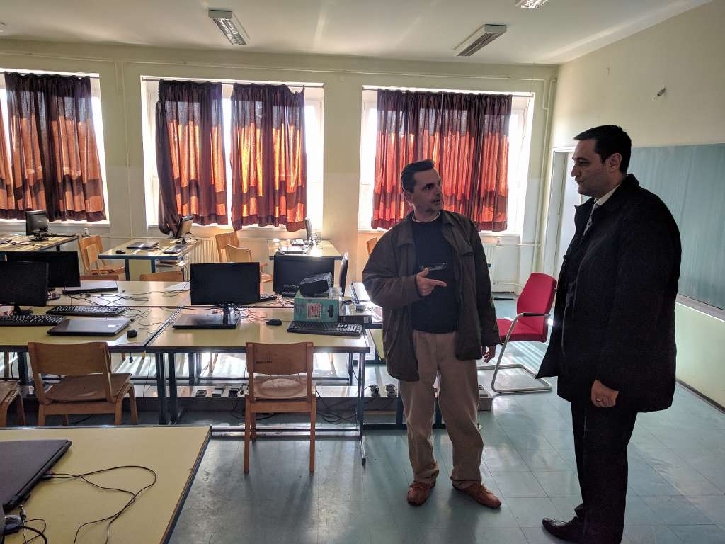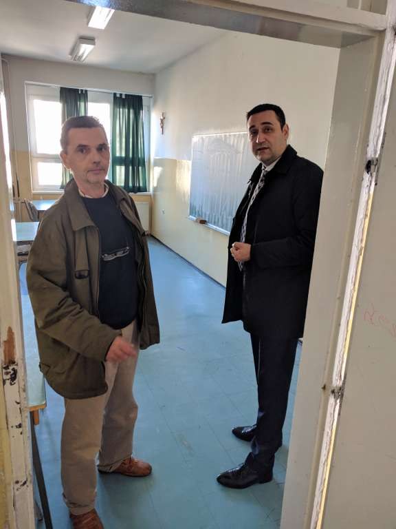 Najprije je s ravnateljem prof. Marinom Kapularem obišao cijelu školsku zgradu, zanimajući se za uštede koje imamo nakon obnove škole u okviru projekta energetske učinkovitosti. Ravnatelj ga je upoznao sa novom sanacijom učionica i kabineta, s donacijom namještaja UniCredit banke, kao i s projektom ugradnje video nadzora te sanacije naših područnih škola: Služanj, Biletići Polje i Gradnići.