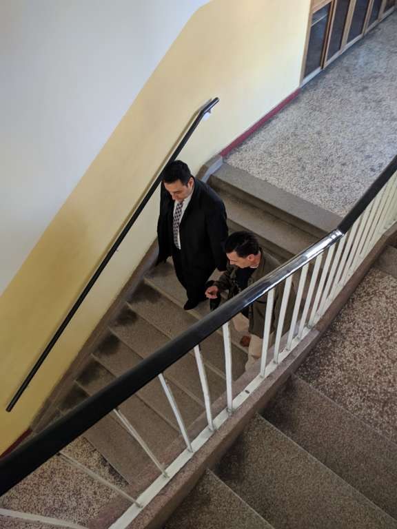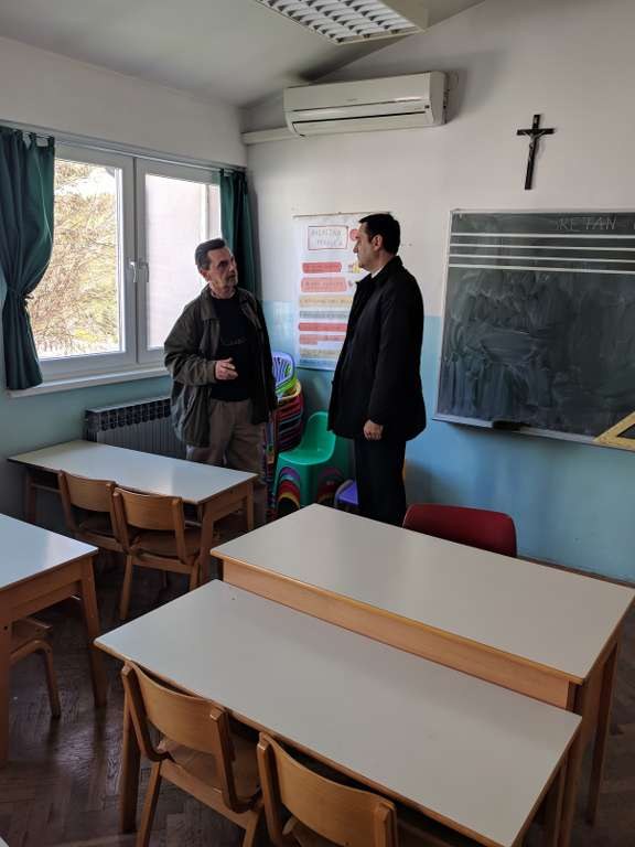 Najprije je s ravnateljem prof. Marinom Kapularem obišao cijelu školsku zgradu, zanimajući se za uštede koje imamo nakon obnove škole u okviru projekta energetske učinkovitosti. Ravnatelj ga je upoznao sa novom sanacijom učionica i kabineta, s donacijom namještaja UniCredit banke, kao i s projektom ugradnje video nadzora te sanacije naših područnih škola: Služanj, Biletići Polje i Gradnići.