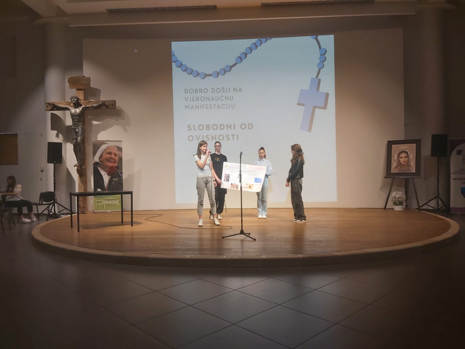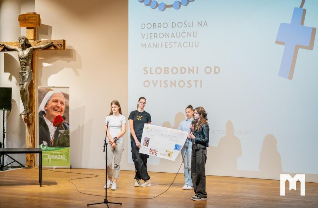 Na istoj je sudjelovalo 15 osnovnih škola. Našu školu su predstavile učenice 8. c razreda s temom “Moderne ovisnosti”. Na samom kraju manifestacije svi nazočni učenici i vjeroučitelji imali su priliku poslušati poučno svjedočanstvo o borbi protiv ovisnosti i putu prelaska iz tame (ovisnost o drogi) u svjetlo ( život bez ovisnosti, posvećenost molitvi, radu i Bogu). Naše učenice, njihove vjeroučitelje Kristinu Vučić i Marina Džidića, kao i sve nazočne, duboko je dirnulo spomenuto svjedočanstvo te su svoje dojmove ponijeli svojim domovima i školama. Poruka je kratka i snažna: “ Reci NE ovisnosti, a reci DA slobodi i radosti življenja!”