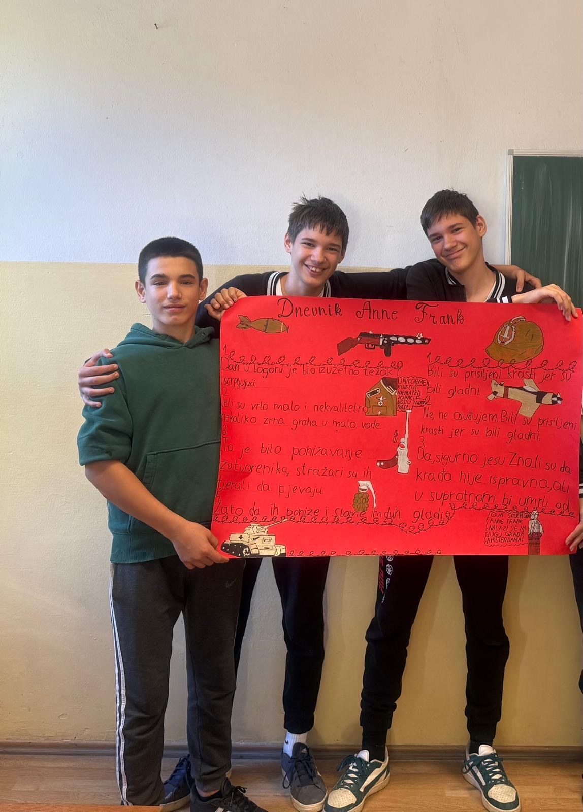 Poslije čitanja i uspješnog predstavljanja uradaka, osmaši su pogledali film Sjećanja na Annu Frank te pisali ispit u kojemu su povezali i usporedili pročitanu knjigu i film.
