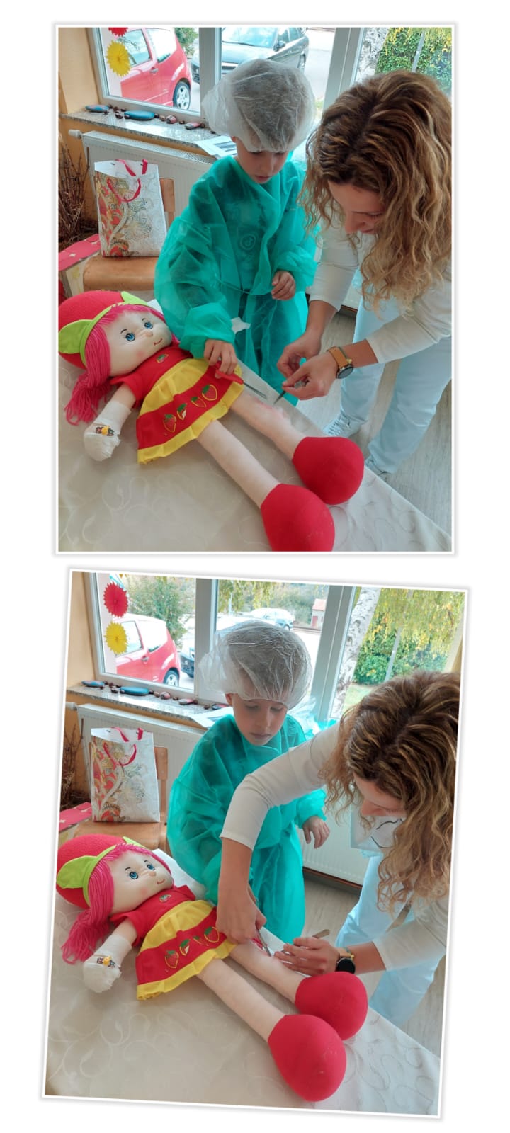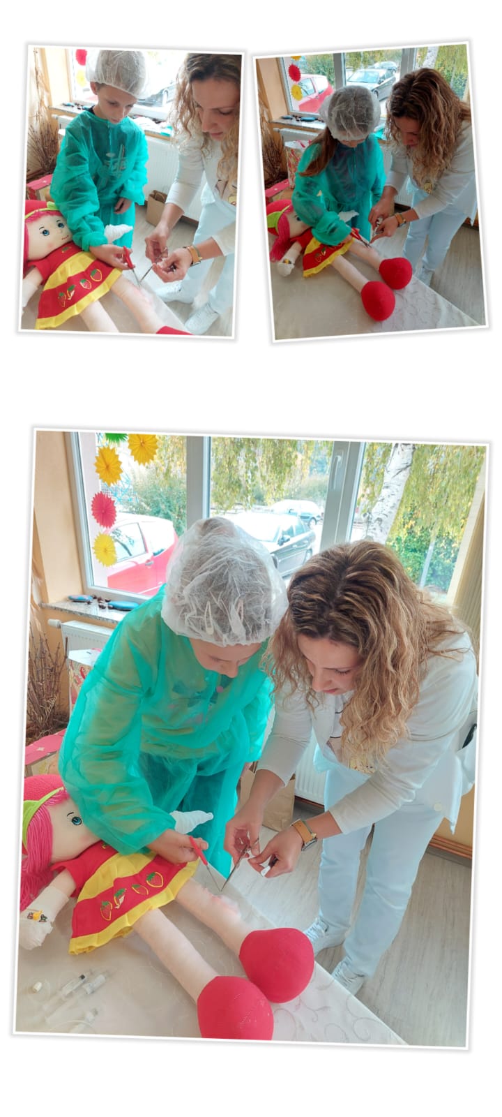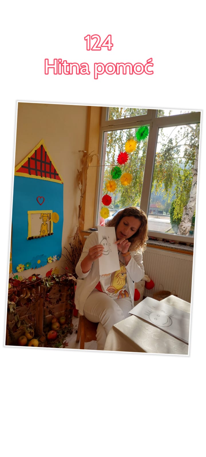 Predstavila je ustanovu u kojoj radi (CUM) te nabrojala ostale zdravstvene ustanove i njihovu ulogu. Na kreativan način učenike je podsjetila na broj hitne pomoći (124).