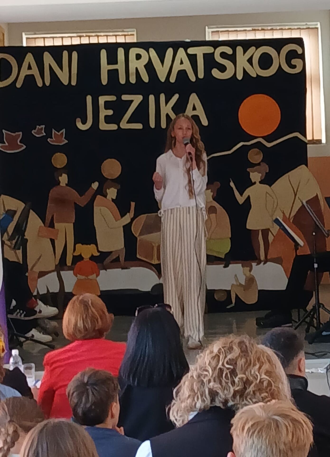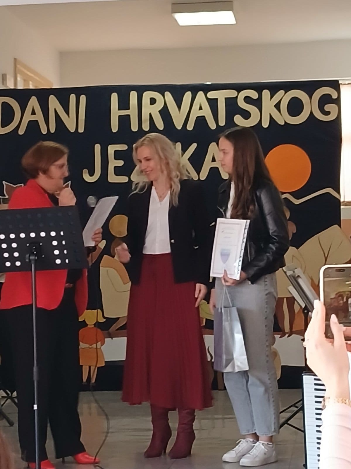 Nakon natjecanja u pisanju poezije provedeno je Županijsko natjecanje učenika osnovnih škola HNŽ-a u recitiranju, koje organizira Zavod za školstvo Mostar, a koje se održalo u OŠ ,,Crnići”, 11. ožujka 2026. g. Na natjecanju za najboljeg recitatora našu je Školu predstavljala učenica Marija Martinović (VIII. d). Marija je, svojim talentom i zavidnim umijećem recitiranja pjesme Nevidljivi tragovi, izborila prvo mjesto u recitiranju poezije. Obje učenice su nagrađene vrijednim nagradama koje im je, u ime Zavoda, uručila savjetnica za hrvatski jezik, gđa Lidija Jerković.